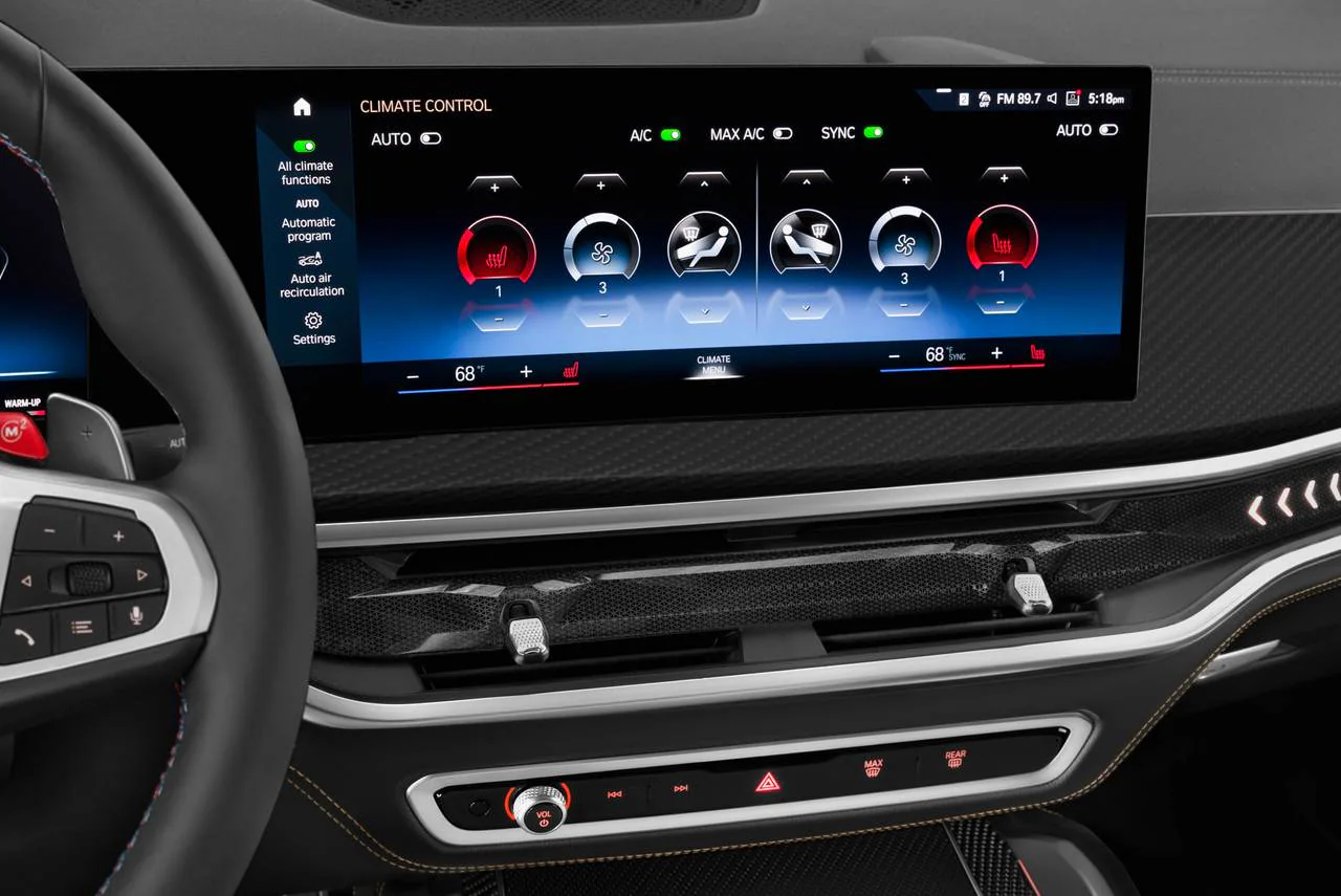 El sistema de infoentretenimiento del vehÃculo tiene una curva de aprendizaje, pero pronto lo puedes entender. Sincronizar un smartphone es sencillo y el Bluetooth se conecta rápidamente. El X6 M tiene conectividad inalámbrica para Apple CarPlay y Android Auto, lo que significa que puedes sincronizar las aplicaciones de tu teléfono con el sistema de infoentretenimiento sin necesidad de usar cable, tiene varios puertos USB-C en las filas delantera y segunda para mantener a todos cargados, y la base de carga inalámbrica funciona muy bien.