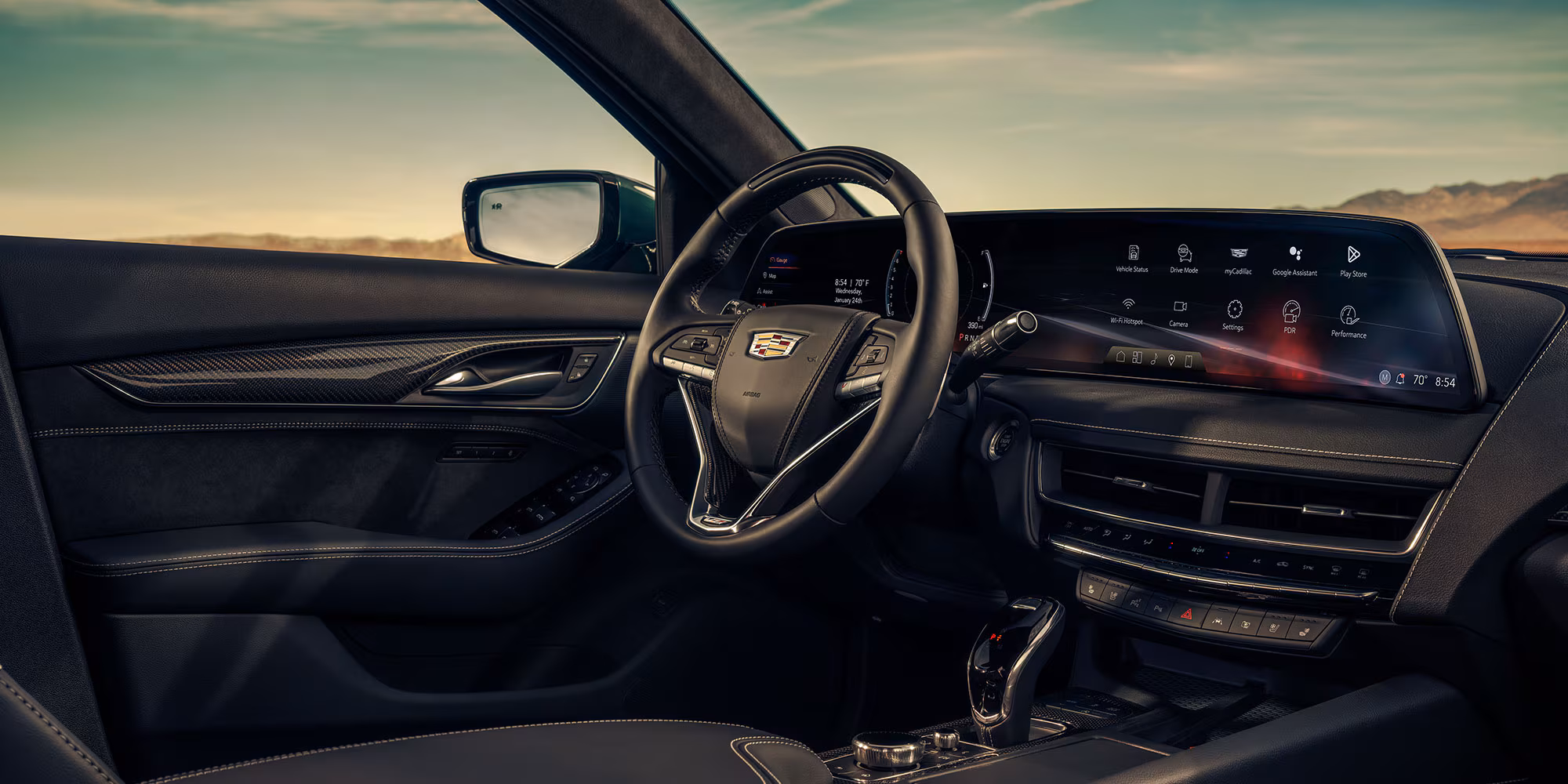 En términos de lujo puro, el habitáculo no impresiona en comparación con marcas como BMW y Mercedes-Benz, pero la nueva pantalla digital refina y moderniza el habitáculo del CT5.