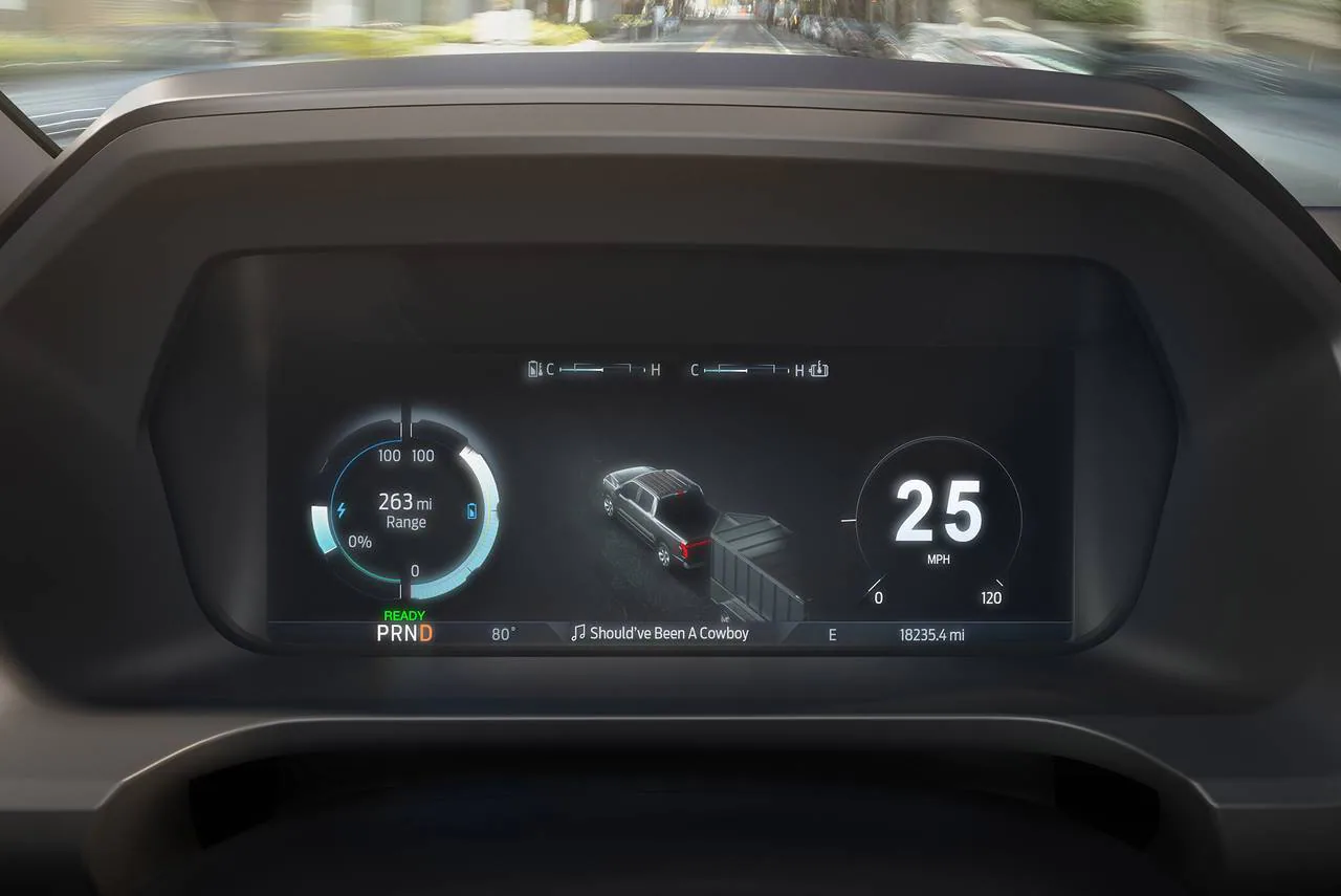 El Lightning tiene dos opciones de batería disponibles. La batería estándar tiene un rango estimado por la EPA de 240 millas para 2023, que es un poco más que el año pasado. La batería de rango extendida opcional proporciona un rango estimado de 320 millas con una carga completa, y hemos obtenido una impresionante 345 millas con esta batería en las pruebas de rango real de Wikicars. Es un camión y se espera que haga cosas de camiones. Con una capacidad de remolque máxima de 10,000 libras. Esto es menor que la cifra de carga útil máxima para un F-150 regular, pero aún es bastante útil. Solo sepa que remolcar largas distancias con un EV puede ser un desafío debido al rango reducido y la falta de infraestructura de estación de carga adecuada.
