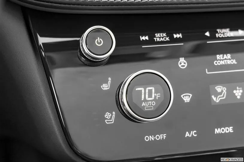 Uno de los sellos distintivos de un SUV de lujo es un interior silencioso y el QX60 ciertamente lo cumple. Aparte de una leve ráfaga de viento, el Infiniti suele ser silencioso en todo tipo de superficies de carreteras. El control de temperatura del QX60 es otro punto fuerte. El sistema es fácil de entender y operar, y cuenta con salidas de aire montadas en el techo para los pasajeros de la segunda y tercera fila para mejorar el flujo de aire. Nuestro vehículo de prueba Autobiography de acabado superior tenía asientos delanteros con calefacción y ventilación de acción rápida, así como asientos con calefacción en la segunda fila.