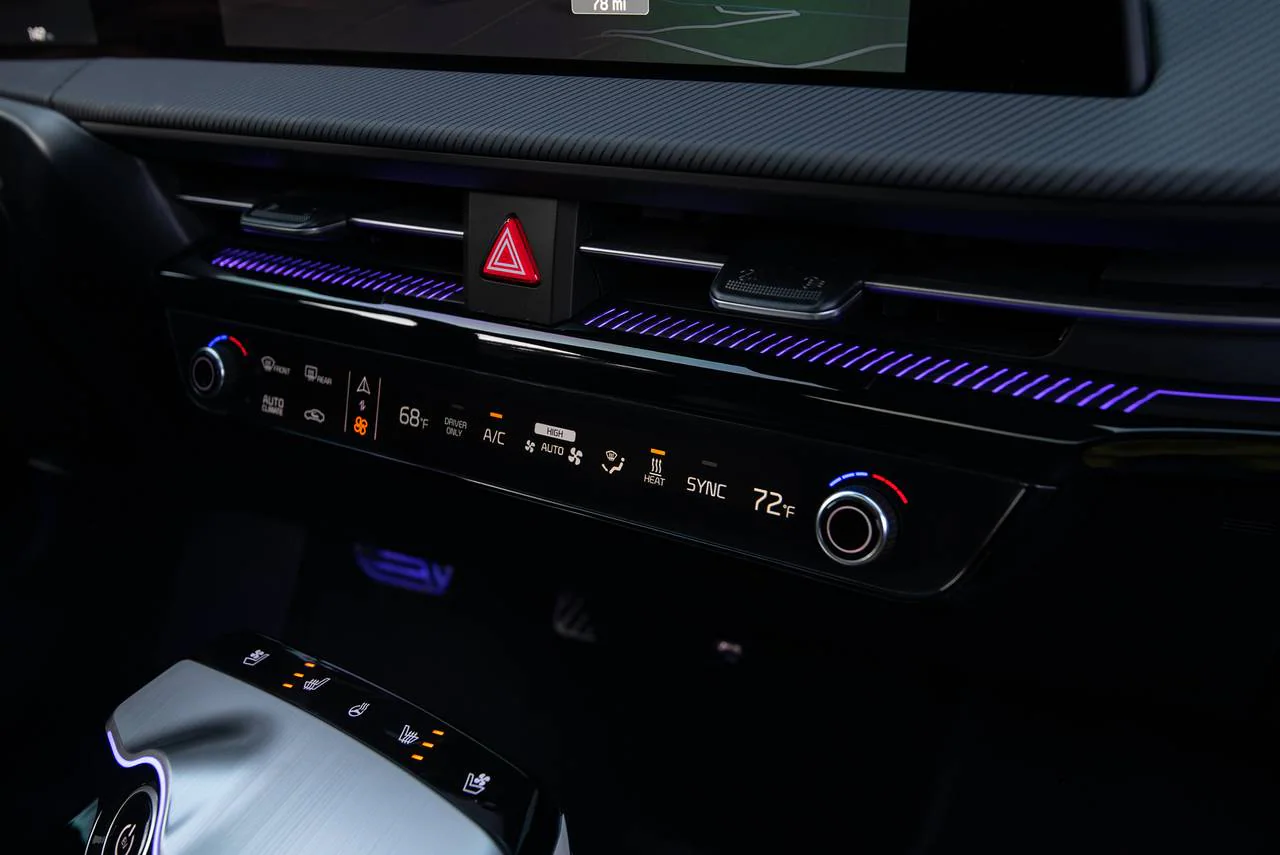 El EV6 GT-AWD Line que probamos venía repleto de características como una cámara de estacionamiento con vista de 360 grados, una pantalla de visualización frontal y un sistema de advertencia de punto ciego, por nombrar algunas. Con un precio similar al de los competidores de Ford y Hyundai, pero no se compara por completo en algunas áreas. La calidad de los materiales del interior no es suficiente a este precio, y el mediocre sistema de sonido es algo que los compradores pueden notar. La garantía de Kia es una de las mejores en el negocio. Ofrece una garantía de tren motriz de 10 años/100,000 millas en sus vehículos eléctricos que incluye el paquete de baterías. También obtiene cinco años/60,000 millas de cobertura básica, herrumbre y en carretera.