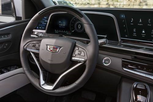Cadillac ha mejorado el Escalade en el departamento de electrónica. La pieza principal es el tablero digital, que se compone de tres pantallas OLED curvas que se superponen una sobre otra para crear un fantástico espacio digital combinado de 38 pulgadas, algunas de las cuales sirven como grupo de indicadores del conductor mientras que el resto proyecta el Sistema de infoentretenimiento CUE para conductor y pasajero. La colección de pantallas recuerda a la configuración monolítica gigante de infoentretenimiento de la clase GLS de Mercedes-Benz, pero la configuración apilada del Escalade crea profundidad y parece mejor integrada que la del Benz. Otras características tecnológicas incluyen un sistema de navegación de realidad aumentada y un paquete de entretenimiento para el asiento trasero disponible que incluye dos pantallas de 12,6 pulgadas con capacidad de transmisión. La integración de Apple CarPlay/Android Auto y un punto de acceso Wi-Fi también son estándar. Los audiófilos estarán de enhorabuena sin importar el modelo de Escalade que elijan. Cadillac se ha asociado con la empresa de audio y acústica AKG, ganadora del premio Grammy, para desarrollar los sistemas de sonido estándar y opcionales del Escalade. Un sistema Studio Sound de 19 bocinas es estándar en los modelos Luxury, Sport y Premium Luxury, pero los modelos Platinum tienen el sistema AKG Studio Reference con la friolera de 36 bocinas.