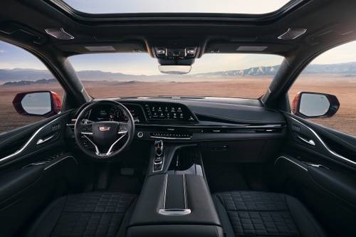 El SUV más grande de Cadillac está propulsado por un motor V-8 estándar de 6.2 litros que genera 420 caballos de fuerza y puede desactivar la mitad de sus cilindros cuando viaja para ahorrar combustible; también está disponible un diésel de seis cilindros en línea de 3.0 litros. Una transmisión automática de 10 velocidades es estándar con ambos motores, y los compradores pueden elegir entre configuraciones de tracción trasera o total. Al igual que sus hermanos, la generación actual de Chevrolet Tahoe y Suburban y GMC Yukon, el Escalade monta una suspensión trasera independiente que proporciona espacio adicional para las piernas en la tercera fila, que se vio comprometido en el modelo anterior debido a su sólido eje trasero. Los modelos de gama alta también ofrecen cámaras de aire con amortiguadores adaptativos. En nuestra pista de pruebas, el Escalade ESV de batalla larga con motor V-8 aceleró a 60 mph en sólo 5,9 segundos. El motor diésel de 277 hp no ofrece el rendimiento en línea recta del V-8 estándar, pero para algunos compradores ese compromiso vale la pena por la economía de combustible mejorada y las potentes 460 lb-pie de torque a bajas revoluciones. Para aquellos fanáticos del Escalade que necesitan velocidad, solo el V será suficiente. Está propulsado por un bestial V-8 de 6.2 litros sobrealimentado que genera 682 caballos de fuerza, lo que resultó ser potencia suficiente para hacer que el enorme SUV alcance las 60 mph en solo 4.3 segundos en nuestra pista de pruebas. También quedamos impresionados con la potencia del V-8 y su murmullo de barítono. Las modificaciones en la suspensión del SUV hacen que se maneje mejor que el SUV estándar, pero el Escalade-V todavía no se siente tan ágil como rivales como el Mercedes-AMG GLS63 o el BMW Alpina XB7.